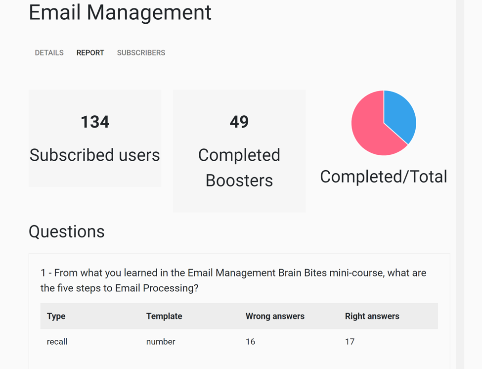 Our BrainBot creator program is a great way to use BrainBot to deliver training reinforcement through Teams, Slack, Facebook, and Email, and can be used with as few as 30 or as many as 300,000 users.